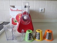 - Moulinex Fresh Express Cub. No només Alemanya plau als fabricants amb els seus productes. En aquesta ocasió, la marca francesa ofereix als clients un tall elèctric modern, elegant i multifuncional a un preu reduït. Combina un disseny lluminós, una gran quantitat de broquets elegants, pes lleuger, facilitat d’ús i gran potència. Un gran avantatge és que la caixa té un compartiment especial en el qual es guarden tots els ganivets. També hi ha una funció de bloqueig del treball, activat quan el dispositiu està en càrregues augmentades.