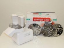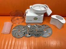 - Cortadora elèctrica "Electric Grate" - Aquest és un dispositiu domèstic. Té un disseny senzill, senzill i fàcil d’utilitzar i tenir cura. El estoig es combina, consta de metall i plàstic, a prova de cops. El nombre de broquets intercanviables és de 5 peces. Permet picar fins i tot les fruites i verdures més dures o massa aquoses. Pes: una mica més de 2,5 kg, potència - 35 watts. Les fulles canvien molt ràpidament i fàcilment, durant el funcionament no hi ha molèsties, els productes es tallen uniformement. Quan s’emmagatzema no s’ocupa molt d’espai.