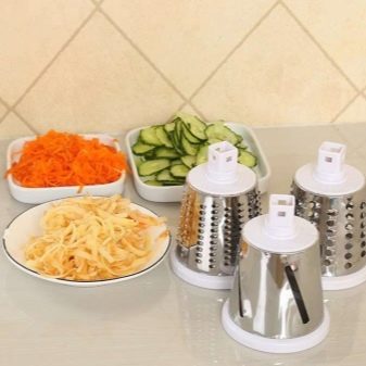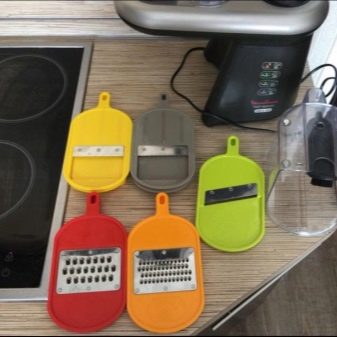 - Dispositiu estàndard. Aquest agregat es pot utilitzar exclusivament per a productes de mòlta: es poden tallar en tires, llesques o pedres. Alguns models permeten tallar productes en tires espirals.