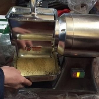 - Per a llocs de càtering. TAquests talladors vegetals es caracteritzen per una gran potència i velocitat, una gran mida i un pes força impressionant. Per descomptat, el seu cost és diverses vegades superior al dels dispositius domèstics. El nombre de broquets és de 5 a 15 peces.