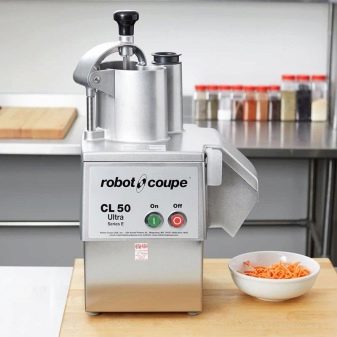 - Robot Coupe CL 50 Ultra. Aquest és el dispositiu professional més popular i d’alta potència. Un bol amb una capacitat de poc menys de 4 kg, capacitat: fins a un quart de tones de verdures en una hora. El kit inclou uns 10 broquets diferents. Aquesta trituradora elèctrica es pot utilitzar fàcilment com a espremedora i com a picadora de carn.