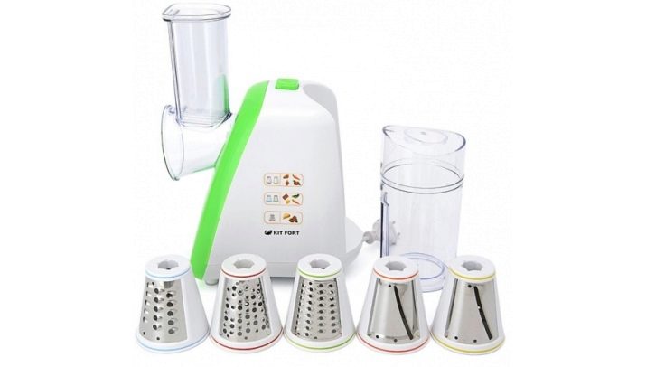 - Cortadora de verdures elèctrica Kitfort KT-1318-3. Disseny lluminós i elegant, combinat amb multifuncionalitat i baix cost, distingeixen aquest dispositiu a les prestatgeries de les botigues. El kit inclou 5 ganivets ratlladors intercanviables, adequats per picar aliments crus i cuits. També s'inclou en el kit un impulsador especial de productes i el dispositiu està equipat amb protecció contra l'encesa accidental.
