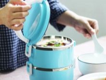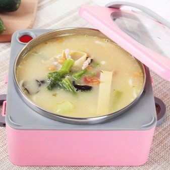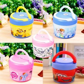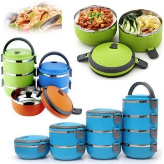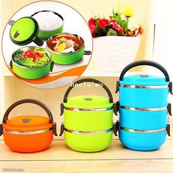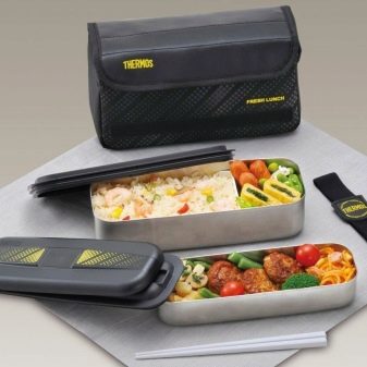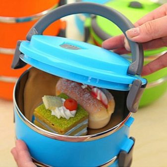 Aquesta caixa no ocupa molt espai, és fàcil de transportar i, segons el model, pot tenir un o més departaments. També pot ser adequat per a aliments sòlids o líquids, tenir calefacció pròpia o connectar-se a fonts externes. Tots els models tenen diferents dissenys: és possible triar una opció tant per a adults com per a nens.