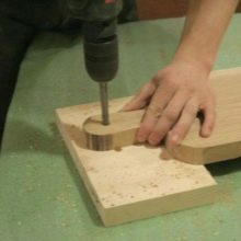 - Foratures. Ara cal fer un forat al mànec del tauler per poder-lo penjar al clavell més endavant.L’única cosa: no fer el forat massa petit, si no, serà difícil penjar el producte. Podeu ser creatius i fer un clip especial o enganxar un ganxo: el principal és que el tauler no estigui a la taula, ocupant espai, sinó que es penja perfectament i aporta encant a l’interior. Però com penjar-lo, tu decideixes.