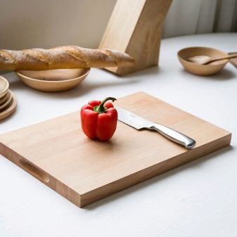 De manera que, per a la carn, haureu de tenir un tauler massiu dens, perquè, per exemple, haureu d’utilitzar una destral si teniu previst cuinar un filet, i una taula fina es deteriorarà després d’un parell d’usos.Per tallar peixos, la fusta més fina és adequada, ja que només s’utilitzarà un ganivet.