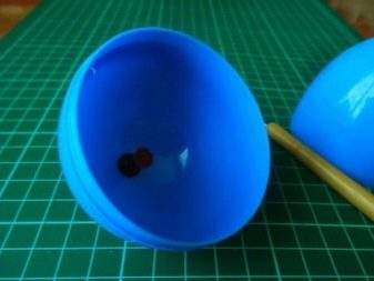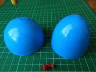 La seqüència de passos es fa pas a pas. En un ou de plàstic, feu un forat a la base de cada part. Inserim les claus de botó amb el cap de plàstic a dins.