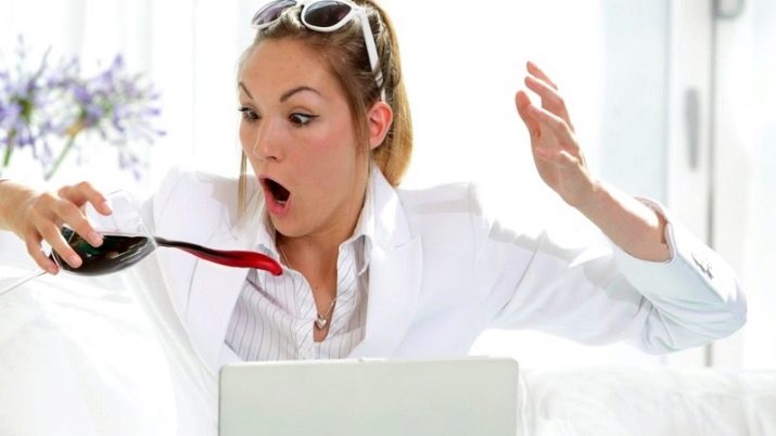 Però allò que no val la pena fer és exactament amb pressa, intentant rentar el vi negre de la superfície del teixit amb aigua calenta. Això pot donar lloc a un resultat completament oposat: el vi només entra més a fons en l'estructura del teixit i, quan intenteu eliminar el material d'una altra manera, la taca només es tornarà blava o verda.
