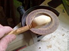 Per tastar el bol, encara necessiteu un cisell regular o, com a opció, un maçot. Primer tallaven un contorn aspre, després s’ajusta amb uns cisells semicirculars petits. El fons està anivellat amb rebombors.
