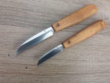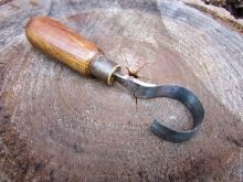 - A continuació, agafeu el ganivet de Bogorodsky, amb l’ajut del qual es talla la part convexa de la cullera. Gràcies al cisell ample, el bol pot donar forma perfecta. La forma del mànec està elaborada amb un ganivet i un cisell.