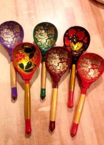 La pintura es realitza amb pinzells petits, no superior a 6, la millor opció és l’esquirol. El dibuix no ha de ser improvisat si no ets un mestre. Dibuixa un esbós amb antelació, transfereix-lo a una cullera. Aplicar pintura en un sol moment! Els patrons poden ser senzills o podeu fer un treball delicat més elegant. Però per a això, primer s’ha de fer l’esbós de color sobre paper: s’entrenarà la mà i ja a la pròpia cullera, per primera vegada es pot aplicar fàcilment un patró complex.