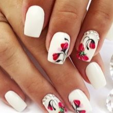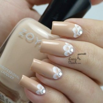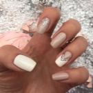 Molta gent pensa que les tonalitats neutres són adequades exclusivament per a les ungles quadrades curtes, però això no és gaire lluny. Una manicura de color blanc beix serà igual de bona en una placa d'ungles llarga i curta de qualsevol forma. Tot depèn del patró escollit. Si prefereixes grans elements de decoració, poden reduir visualment l’ungla, per la qual cosa és millor utilitzar-les en les ungles llargues. I, per contra, petites pedres de pedres, flors i altres joies elegants són perfectes per a les ungles curtes.
