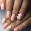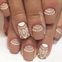 Al contrari de la nostra opinió habitual, el beix amb manicura blanca no només pot ser francès. A més dels clàssics, avui dia s’han posat de moda els patrons sobre tons neutres, així com els dissenys ombre.