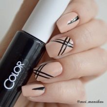 A més, les ungles pintades selectivament de colors neutres: marró, negre, gris, també seran una excel·lent opció per a una manicura blanc-beix. Ideal per al look diari.