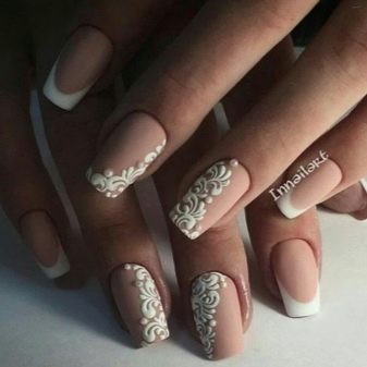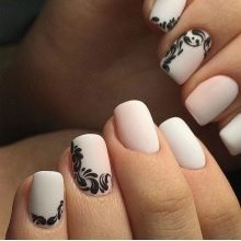La manicura universal s’ha de crear amb tons neutres. Aquesta opció només es pot atribuir ungles en colors beix i blanc. Però a moltes noies els agrada afegir-hi malestar fins a ungles tan delicades aplicant patrons. Considereu les opcions de disseny més populars actuals.