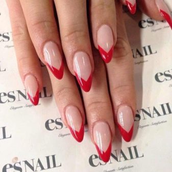 - Variació del color de la manicura francesa. No només està a la moda l’aspecte clàssic de la jaqueta, sinó també les seves opcions especials. Per exemple, amb puntes de colors. Sovint utilitzeu els extrems negres, blaus i vermells de les plaques de les ungles.