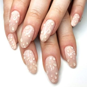 - Amb gelat transparent, es pot crear gairebé qualsevol ornament i relleu a la placa de les ungles. Sovint dibuixeu gotes de rosada o de la superfície d’aigua nervada. Aquesta decoració tindrà un aspecte suau, però alhora original.