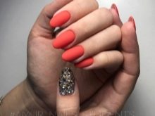Una dona que mai ha provat un disseny mat ha trobat a faltar molt a la seva vida. Està de moda, bonic i insòlit. Avui ha començat la segona onada de popularitat de tons opacs, en color taronja aquest revestiment té un aspecte excel·lent amb fosa, sorra i pedres de pedra. Podeu provar d’experimentar, però no cal pintar sobre tota l’ungla, podeu deixar algunes zones. Aquesta manicura va rebre un nom especial, amb un espai negatiu.