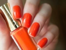 Els dissenyadors del servei d'ungles són molt aficionats a la frega, però trobar el seu color taronja a la botiga no és tan senzill. Per tant, si t’agrada, definitivament l’hauràs de comprar. Perquè al vernís taronja puguis aconseguir l'efecte desitjat, ha de ser de mirall o perla. El Maybug i l’Aurora Borealis semblen magnífics.