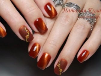 Ara poques persones poden veure la tècnica dels ulls de gat a les seves ungles, però en realitat semblen simplement inimaginables, així que és una llàstima que les dones comencin a oblidar-se’n. Per fer-ho, no cal realitzar accions addicionals, n’hi ha prou amb aplicar un vernís especial a la placa de l’ungla. El revestiment es veu especialment bé si es va escollir la laca negra com a capa base.