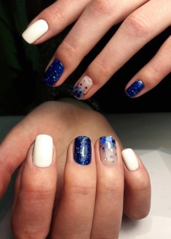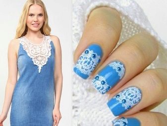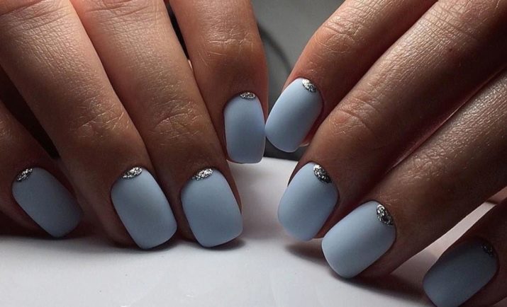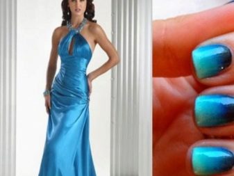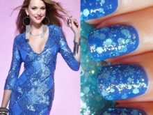Hi ha un gran nombre d’opcions de manicura per a un vestit de color blau. A més del vernís, podeu afegir una gran varietat de decoracions en forma de lluentons, strass, tires decoratives o figures especials per al disseny d'ungles. La moda moderna no coneix límits en la fantasia i permet experimentar amb la imatge.