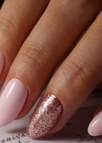 - Selecció. Una característica d’aquesta opció és la selecció d’un o dos dits per triar un color diferent. Per exemple, quatre ungles es poden pintar de color blau i anònim - en blanc. El relleu del dit anell per guspires és molt agradable. Quatre ungles rosades i una amb lluentons daurats complementaran perfectament el vestit blau de blat de moro. Una altra opció serà una rica manicura blava amb una capa blanca al dit índex i el dit petit.