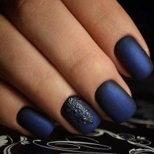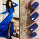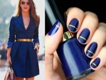 Un vestit que té un color blau fosc és sovint una opció quotidiana. És extremadament rar que aquest article contingui elements decoratius brillants o massa grans. Els dies laborables, es pot combinar un vestit blau amb diverses opcions de manicura. Les senyores poden fer dissenys clàssics, aportant alguna cosa nova i interessant.