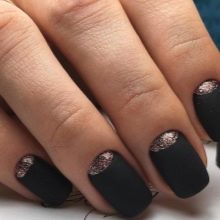 El vestit de nit atrau l’atenció d’altres, ja que és el vestit important en aquesta imatge. Però llavors els convidats estaran a punt per considerar la resta. Perquè el disseny de les ungles no atragui els ulls, val la pena combinar correctament els colors que s’utilitzaran en el disseny. És millor parar atenció als tons neutres i tranquils: semblen elegants i discrets.