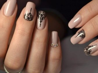 Un suau quadrat de longitud mitjana és una superfície gairebé perfecta per a qualsevol art de les ungles. El fons principal d'una gamma discreta és una estampa negra i delicada que estén visualment l'ungla, o un lleuger accent en forma de pedreria al dit petit. Aquesta opció té un aspecte molt suau, elegant i elegant.