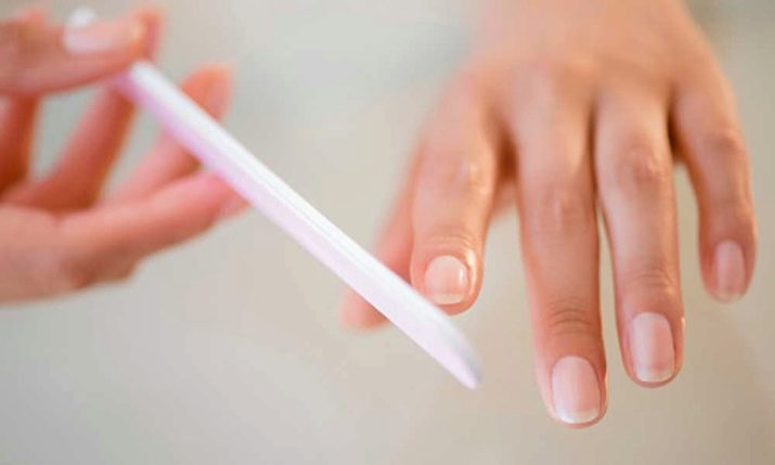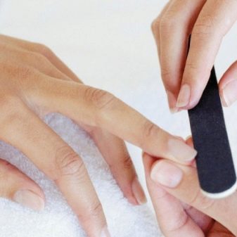 - tallar les vores amb un fitxer abrasiu fi, cal arxivar estrictament en una direcció per no violar la integritat de la placa de les ungles;