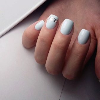 Les ungles quadrades llargues tenen un aspecte excel·lent en monocrom. Un acabat de moda mat en combinació amb una decoració discreta amb accent discret i un petit nombre de pedres sembla molt aristocràtic.