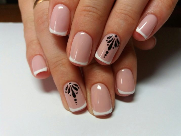 Pel que fa al disseny, necessàriament, com s'ha esmentat anteriorment, ha d'estar orientat a l'estirament visual. En aquest cas, per exemple, ajudarà una manicura canònica francesa, mentre que la vora es desplaça lleugerament per sobre del natural.