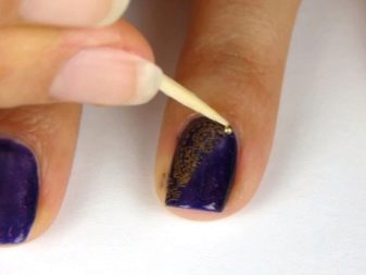 Cal recordar que la decoració s’ha de fer fins que el vernís o la cola s’hagi assecat. Si els brous són de mida molt petita i cobreixen completament la placa de les ungles, no cal utilitzar la base adhesiva, però totes les accions s’han de realitzar ràpidament perquè les comptes tinguin temps per “imprimir” el revestiment abans que s’assequi completament. Les perles es disposen prèviament sobre un tovalló lleuger o un full blanc de paper. Si el recobriment és monofònic, el caldo és millor abocar-lo a un recipient amb vores altes.