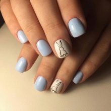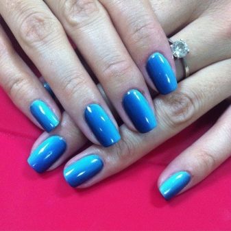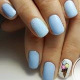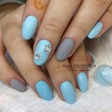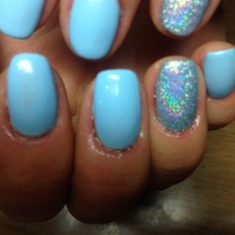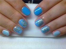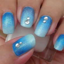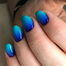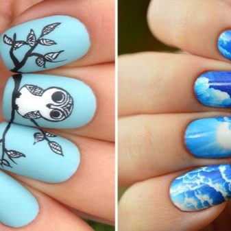 La més aèria i refrescant es considera una manicura en tons blaus. El disseny de les ungles en els colors del cel i de l’oceà és rellevant en qualsevol estació, perquè sembla suau i elegant. A més, aquesta manicura és adequada per a gairebé tots els aspectes i estils de la roba: es pot portar tant amb un vestit clar com amb texans.