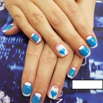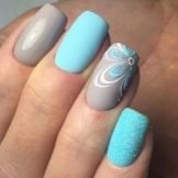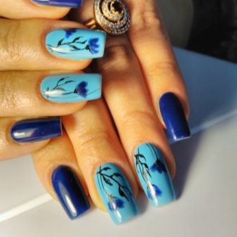 Per un aspecte informal, es considera bo barrejar blau amb beix. El resultat és una manicura discreta i senzilla que posa l’accent en l’elegància i la sofisticació de la noia. Per a personalitats brillants, cal triar un duet de tons contrastats. Així, per exemple, els colors blau i negre de blat de moro emfatitzen el vestit elegant. Aquesta combinació de paleta es pot diluir amb línies i gràfics suaus.
