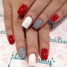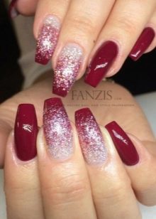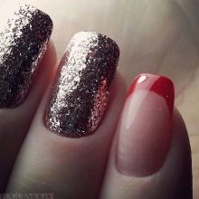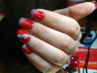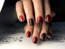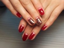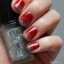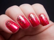 Per comprar un vernís brillant o comprar purpurina seca ja preparada, l’elecció és vostra. I també per a cada dona, els colors de la manicura són individuals, preferits i estimats. Penseu en opcions senzilles, però de moda i elegants per combinar vernís brillant vermell amb espurnes de colors.