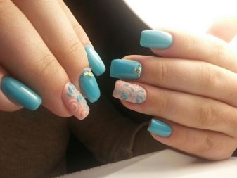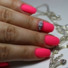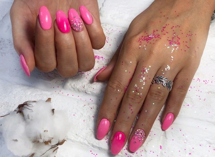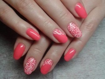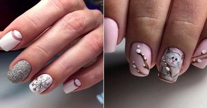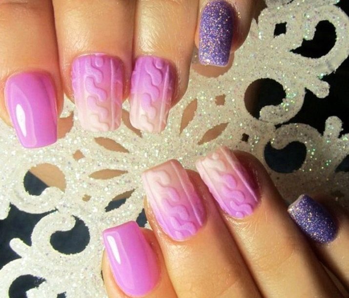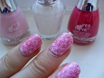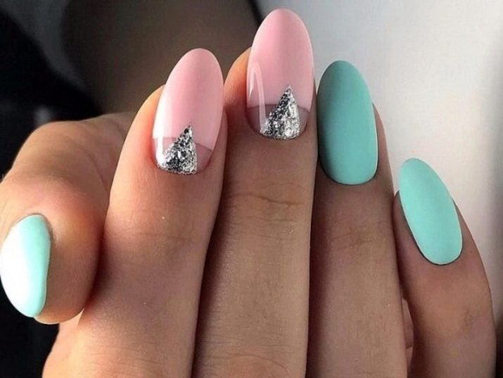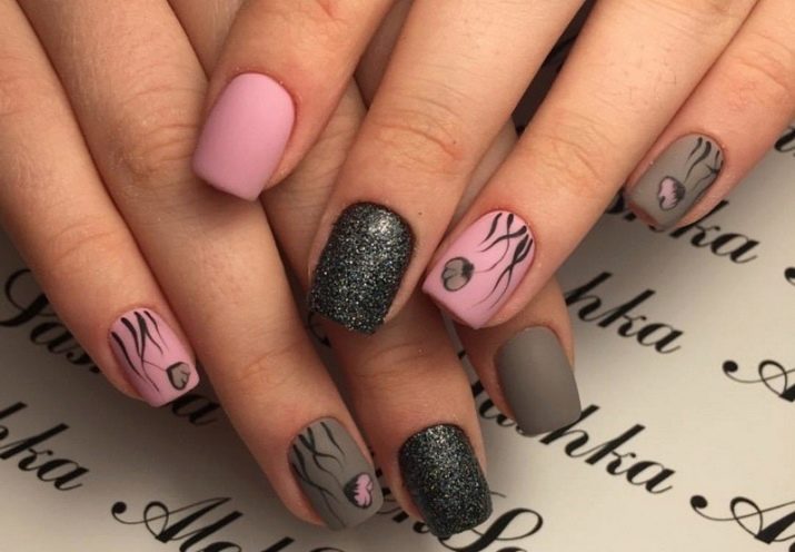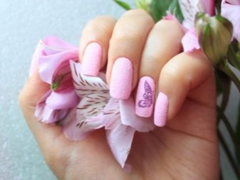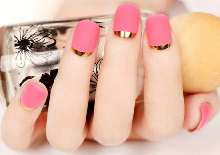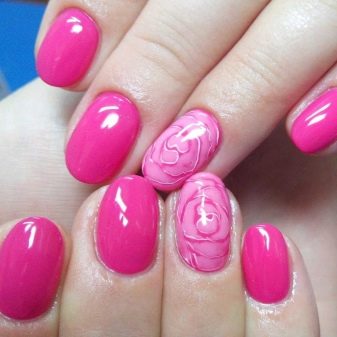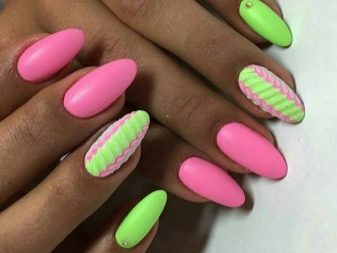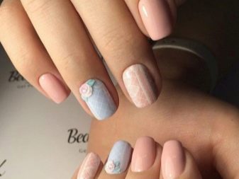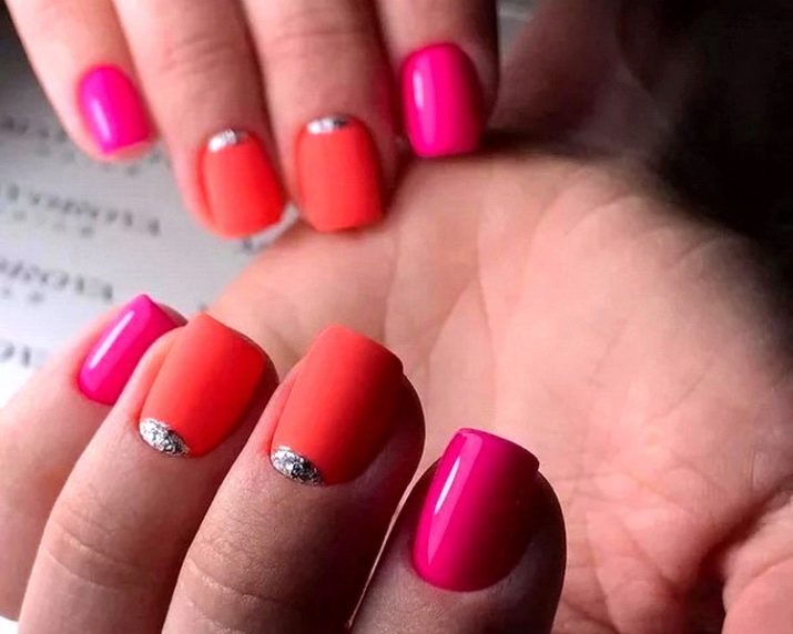 Podeu combinar diferents tipus de textures. Per exemple, una d’aquestes solucions és una combinació de recobriments mat i brillant. Un patró brillant amb rínxols o geometria sobre una base mate de l’ungla es veurà bonic. A aquells que prefereixin un tipus de textura voluminós, els agradarà les tècniques de decoració com els pols acrílics i els brous. Podeu triar aquesta decoració en una àmplia gamma. Pel que fa als tons de rosa, podeu triar opcions no només en un to relacionat, sinó també en un to idèntic.