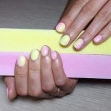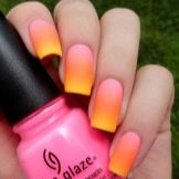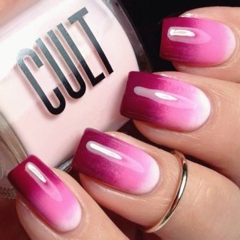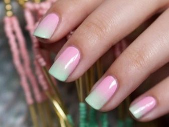 Les ungles rosades de la tècnica dels degradats es veuran boniques si utilitzeu recobriments de diversos tons de colors pastel.Aquest disseny serà especialment rellevant per a l'estiu, i les tendències de la moda estan segures que la transició d'un to a un altre hauria de ser el més suau i natural possible. Un degradat en tons de rosada relacionats, cobert amb una part superior amb un efecte mat, també es veurà elegant.