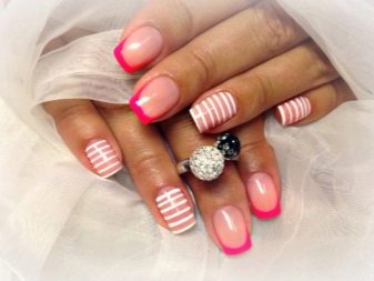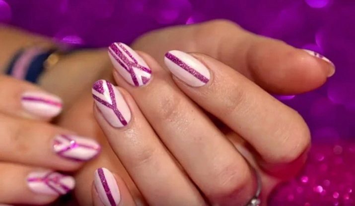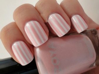 Una de les tendències serà el tema de les ratlles. Al mateix temps, els dibuixos es poden fer en tons contrastats sobre un fons rosat o amb un vernís d'un sol color. Podeu pintar-les verticalment, en diagonal o a través de la placa de les ungles. Al mateix temps, s’ha de tenir en compte la seva longitud: a les ungles curtes, les línies verticals es veuen millor, mentre que les transversals faran més breu l’ungla.