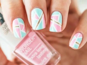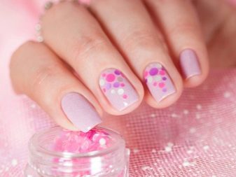 Tot i que aquesta decoració no és una novetat, a la nova temporada serà una de les tècniques de moda decoratives per al disseny d'ungles. Estarà de moda decorar les ungles amb no només una varietat de cercles de colors relacionats o contrastats amb el pigment rosat. La moda ofereix dissenyar ungles d’accent amb diversos quadrats, triangles i políedres. Per als amants dels dissenys de marshmallow, es proveïa de confeti en forma d’estrelles i cors.