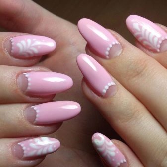 A aquells que estan cansats de tècniques tradicionals els agradarà la idea d’una manicura anomenada “vel”. Una base translúcida amb un patró pintat amb pintura acrílica es veurà increïblement suau i femenina. L’essència sencera d’aquesta tècnica és aconseguir una base translúcida, per a la qual s’utilitza un poliment de gel transparent i algunes gotes de pigment rosat. Com més fosc sigui el to del color original, més intens serà l'efecte de les mitges de vel o niló.