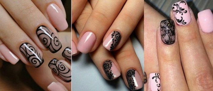 Els arcs de nit han de ser elegants, de manera que per a manicures especials en tons rosats, podeu utilitzar una decoració brillant. Tot i això, haureu de fer una reserva immediata: s’haurà d’utilitzar en dosificació, per no semblar insípida i vulgar. La posició de lideratge en la realització del dibuix l'ocuparà patrons que utilitzin punts, línies i diverses formes geomètriques. Per a les cebes d'estiu, s'han de triar dissenys amb temes florals, plantes, abstractes i motius ètnics. Considereu les principals tendències en la decoració d’ungles en la propera temporada.