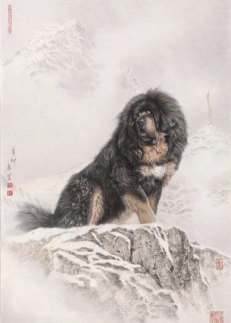 Aleshores el Buda va decidir donar-li a la persona un fidel assistent: va agafar el coratge i la força d’un lleó, la saviesa d’un llop, la sensibilitat d’un ocell i el cor d’un nen ingenu - i el va donar a un gos gran. Així va néixer el mastí tibetà, que es va convertir en una eina indispensable per a agricultors i pastors, comerciants i viatgers. Aquest gos es va convertir en el protector dels monjos i ermitans budistes. No hi ha dubte que la gent del Tibet simplement no podia sobreviure en condicions tan dures sense l’ajuda d’aquest enorme i atrevit gos.