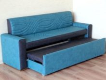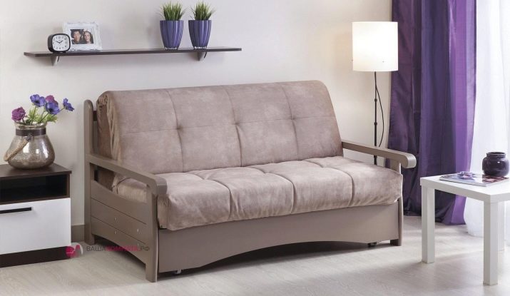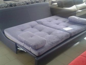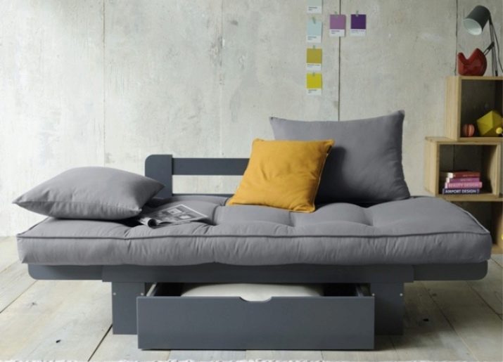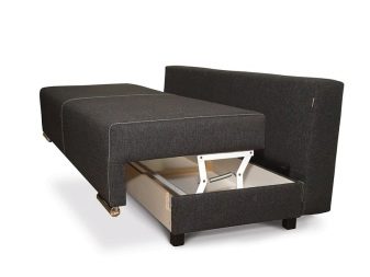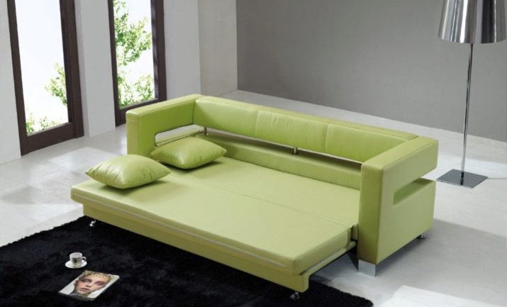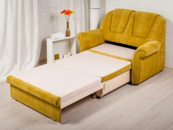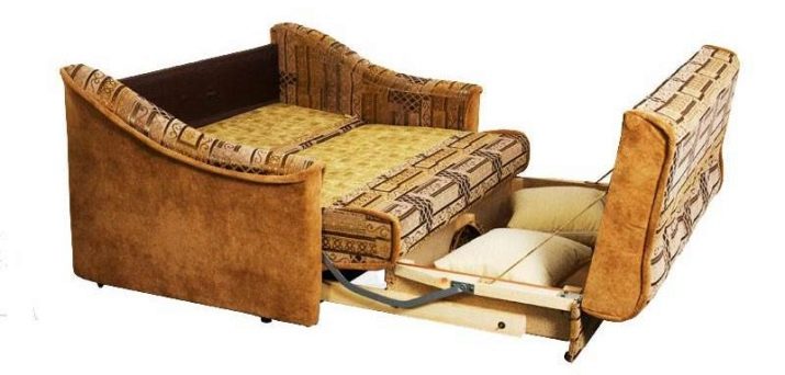 On és ell més sofà clàssic desplegable. Aquesta solució també permet garantir la compactitat quan es plega; però la baga estarà situada força baixa. No a totes les persones els agrada. Sí, i els corrons rodant a terra en un esquema així no poden anar enlloc.