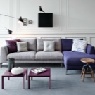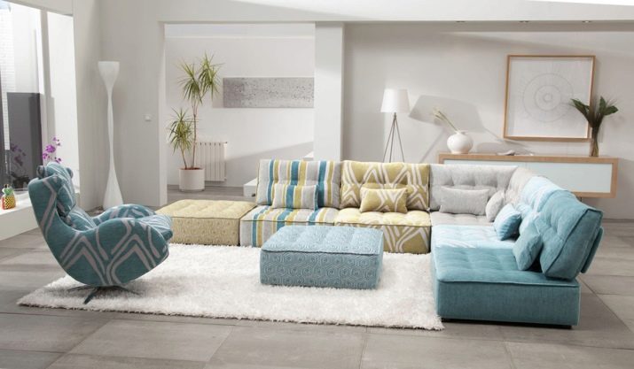 - Sofàs modulars - el tipus de mobles més mòbil i multifuncional, el seu disseny consta de diverses peces que es poden utilitzar tant junts com per separat. Si és necessari, les peces es combinen en un ordre diferent, per exemple, es desmunta un sofà gran cantoner en dues línies rectes o s’utilitzen petits mòduls separats com a otomans.