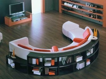 Als llocs de descans, a la sala d'estar, al dormitori o al menjador, una bona solució seria versió modular. Els models illencs són convenients per zonificar habitacions - a les sales de treball aquests sofàs equipen llocs per a converses informals, a les sales instal·lades davant dels televisors.