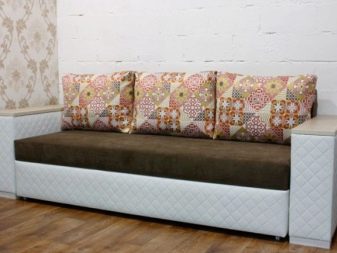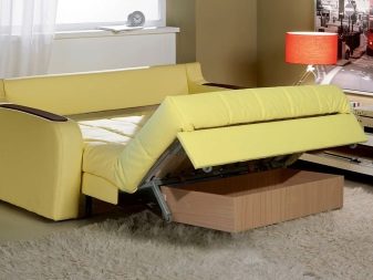 Els sofàs amb un mecanisme giratori van ser els primers a aparèixer al mercat de mobles entapissats, són compactes i molt fàcils d’utilitzar, per tant sempre són rellevants. El disseny implica un mínim d’elements, no hi ha peces trencadisses, rodets. Un avantatge important és la disponibilitat d’una caixa per a la roba. Entre els minus - entre el sofà i la paret hauria de tenir una distància de 10-15 cm, necessària per desplegar-se, - els seients s’aixequen i la paret posterior s’inclina, formant un lloc per al cap.