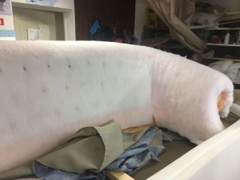 L’hivernador sintètic s’utilitza principalment per omplir els dors posteriors, proporciona a l’estructura una suavitat més gran, proporciona un descans còmode. Sintepuh i holofiber s’utilitzen per rellotjar reposabraços i seients, en el segon cas es posen sobre capes d’escuma de poliuretà. El més pràctic és el làtex: un material hipoal·lergènic ecològic amb una estructura porosa, la seva vida útil supera els 10 anys.