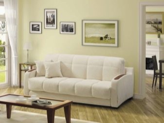 Si periòdicament calen llits addicionals, és millor triar una vista directa estacionària del sofà, també és adequat per a les habitacions d’oficines.