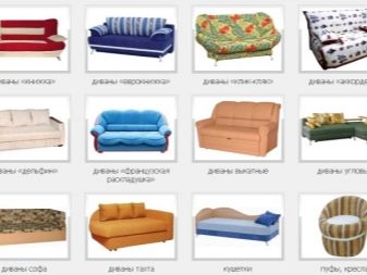 La forma i el disseny del sofà també es selecciona tenint en compte la finalitat dels mobles, l’elecció del material de fabricació i el cost total del producte futur dependrà d’aquest indicador. Per exemple, els models amb tapisseria barata són adequats a la cuina, per als llocs de dormir és recomanable demanar sofàs de materials naturals, els productes de cuir o pell són més pràctics a les sales de treball o d’oficines. Per designació, aquest element dels mobles entapissats es classifica en cinc tipus: