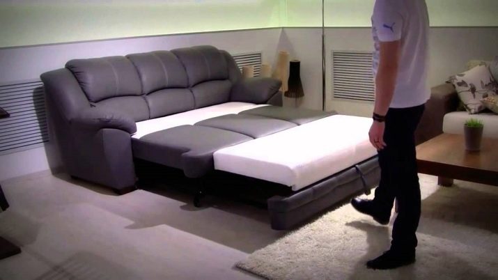 Primer, estireu el mànec de drap situat a la part transversal inferior del seient i llisqueu tot el marc del seient cap a fora. Després cal alinear la superfície de dormir dels mobles, baixant la paret posterior. En alguns models, s'utilitzen coixins adjunts addicionals per a aquests propòsits: quan es munten, juguen el paper d'un segon respatller suau. El mecanisme retràctil d'aquest tipus de models, per regla general, es basa en un sistema de corrons, amb menys freqüència: en el disseny es construeixen molles especials, que reclinen els seients un cop extreta la part inferior.
